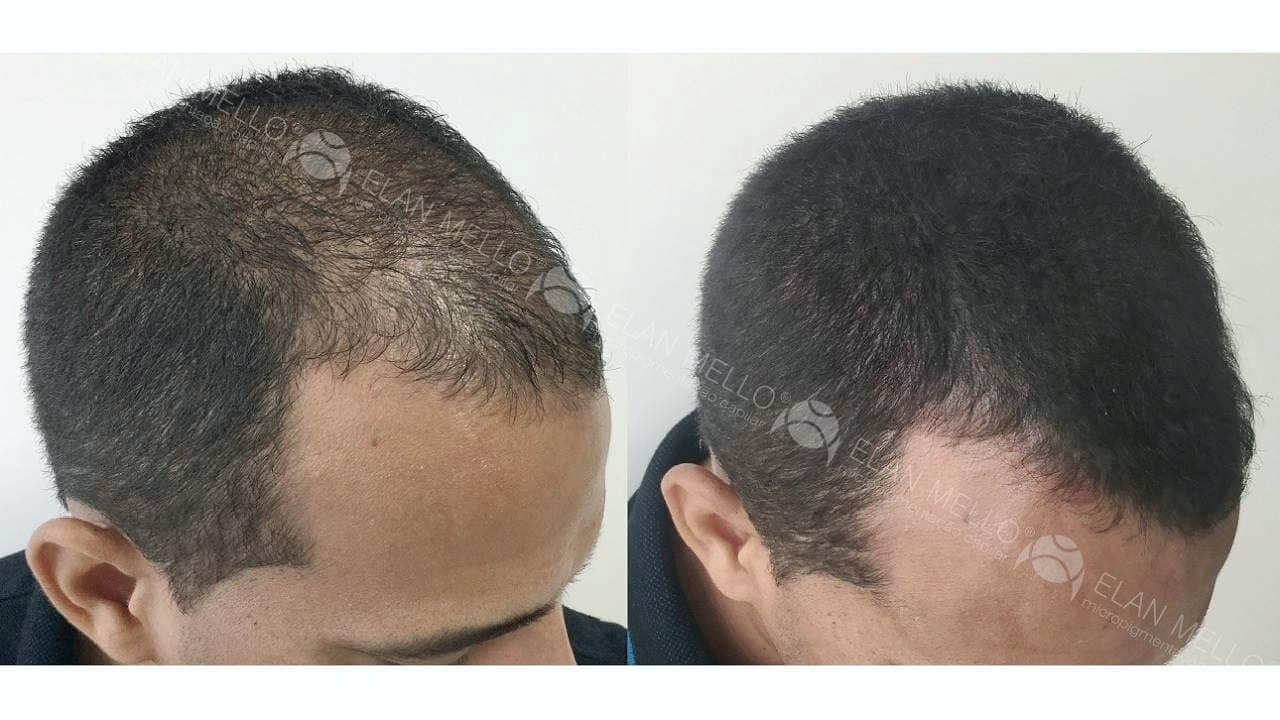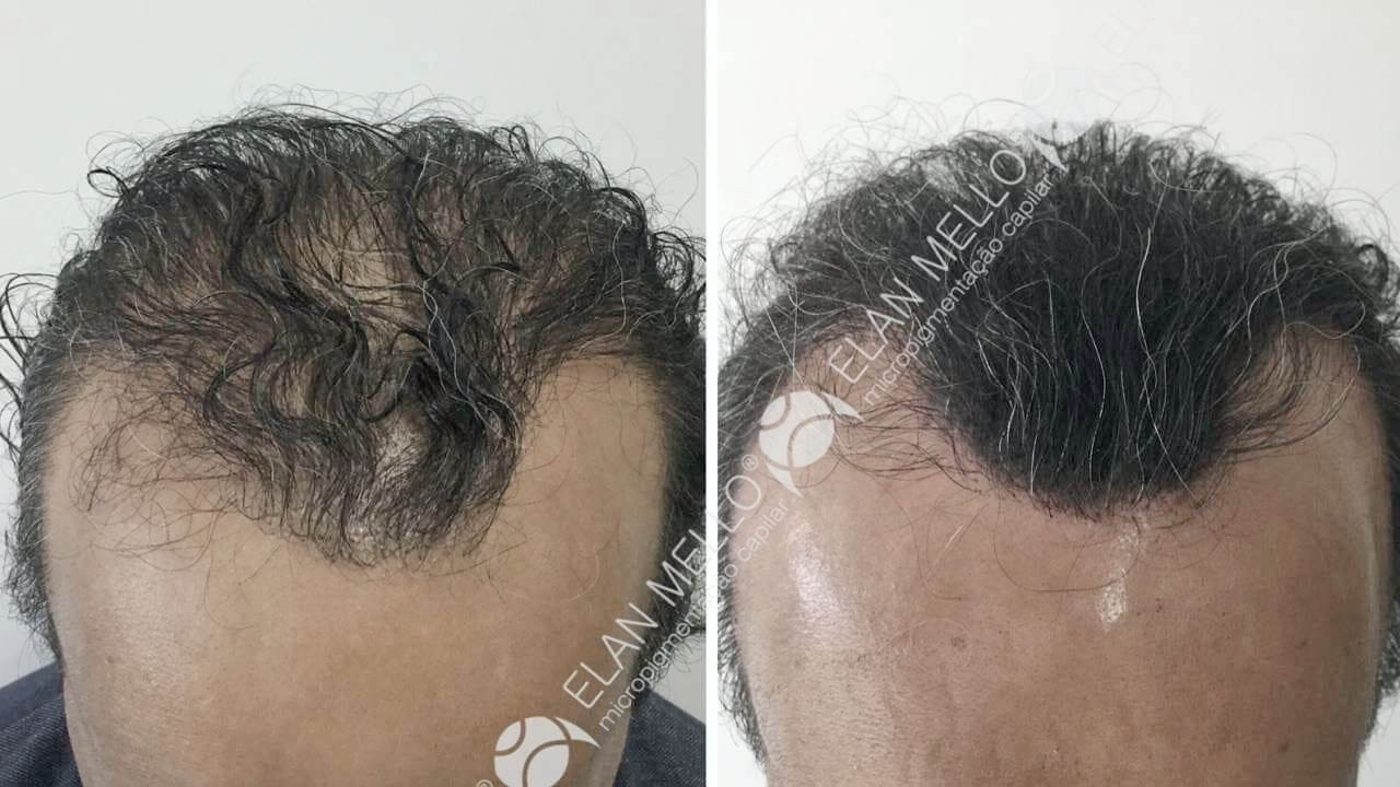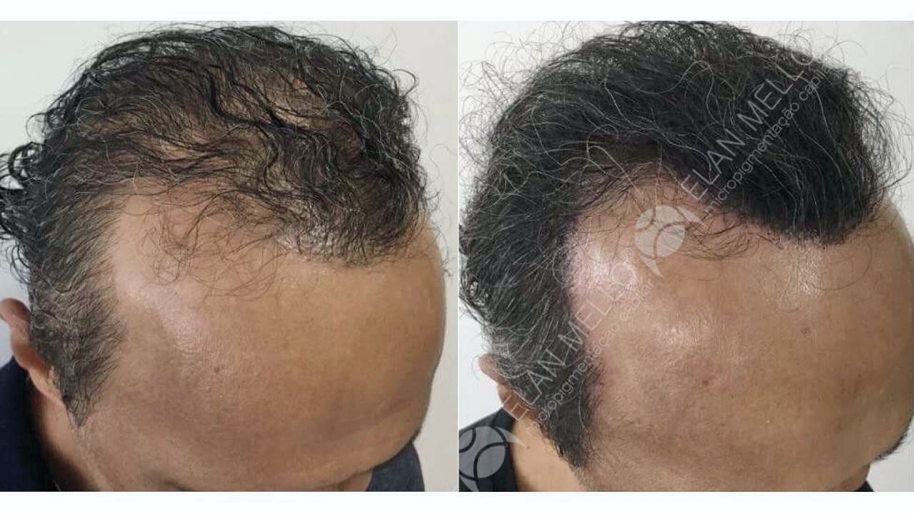 Acaba com o fundo cor de pele do couro cabeludo com calvície em evolução que ainda possua alguns cabelos, escurecendo essa região e em alguns casos podendo interagir com o movimento dos cabelos fazendo mechas ou acompanhando o desenho do redemoinho. ficando natural e imperceptível a presença do procedimento.