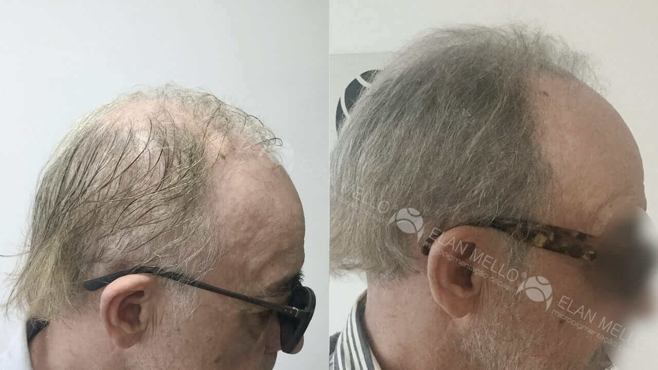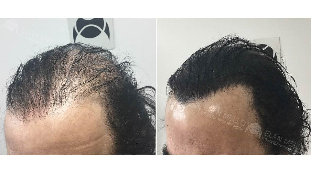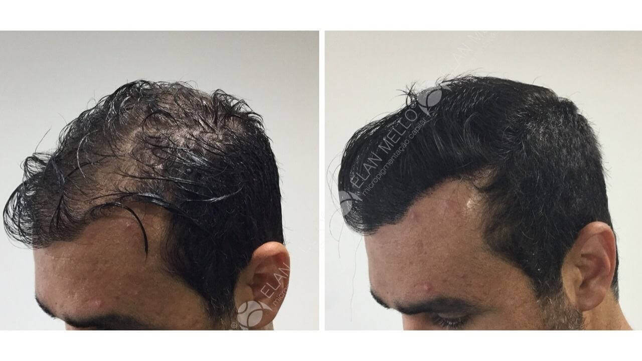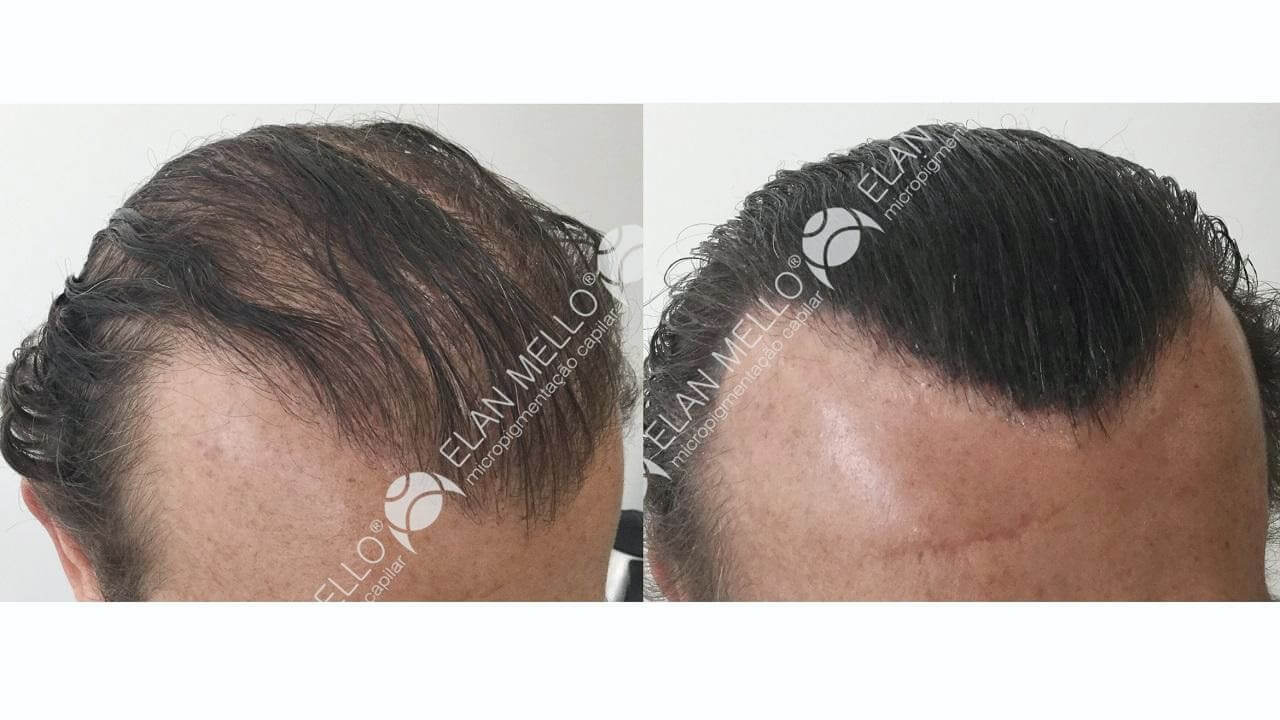 Acaba com o fundo cor de pele do couro cabeludo com calvície em evolução que ainda possua alguns cabelos, escurecendo essa região e em alguns casos podendo interagir com o movimento dos cabelos fazendo mechas ou acompanhando o desenho do redemoinho. ficando natural e imperceptível a presença do procedimento.